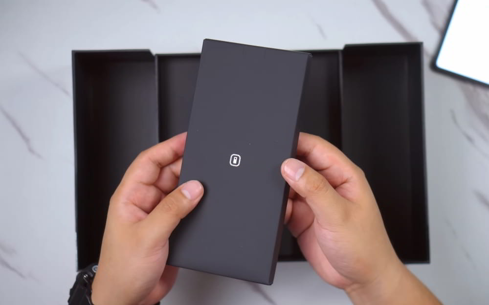 Sa harap ng box, may makikita tayong malaking letter V at may text na Phantom V Fold. Ang unang makikita sa loob ng box ay ang cover na may “Beyond The Extraordinary” na text. Kapag tinanggal natin ang cover, ‘yung Phantom V Fold na ang makikita natin na nakabalot sa plastic. Sobrang ganda ng likod niya, hindi siya leather pero matte-finished siya. Sa loob ng box, meron pa itong document sleeve na may sim ejector pin, warranty card at back cover na naka-carbon fiber design, 45W charger at charging cable.