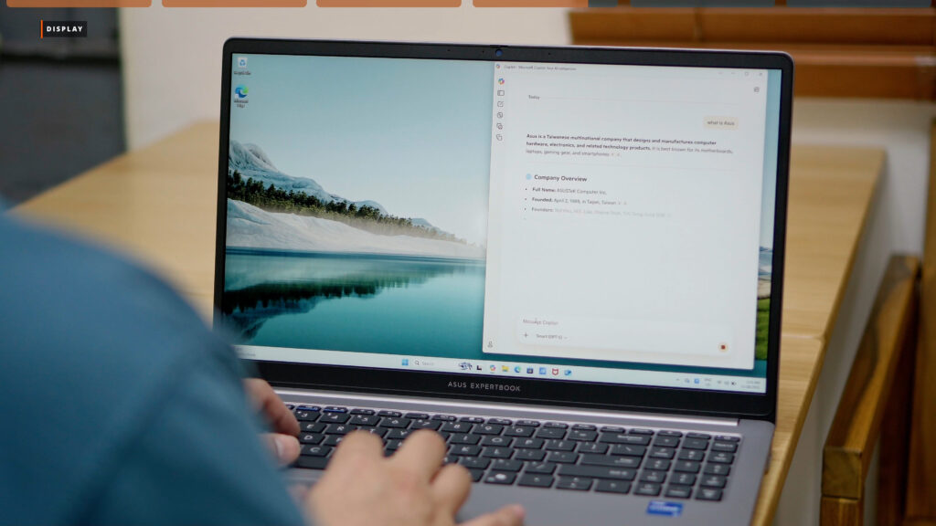 Meron din itong 720p HD Camera na may privacy shutter. Pwedeng i-close yung webcam kung hindi na natin ginagamit for additional peace of mind. Copilot+ PC na rin itong ExpertBook P1. Compatible ito sa Copilot ng Microsoft. Malaking tulong ulit yan sa mga workloads natin.