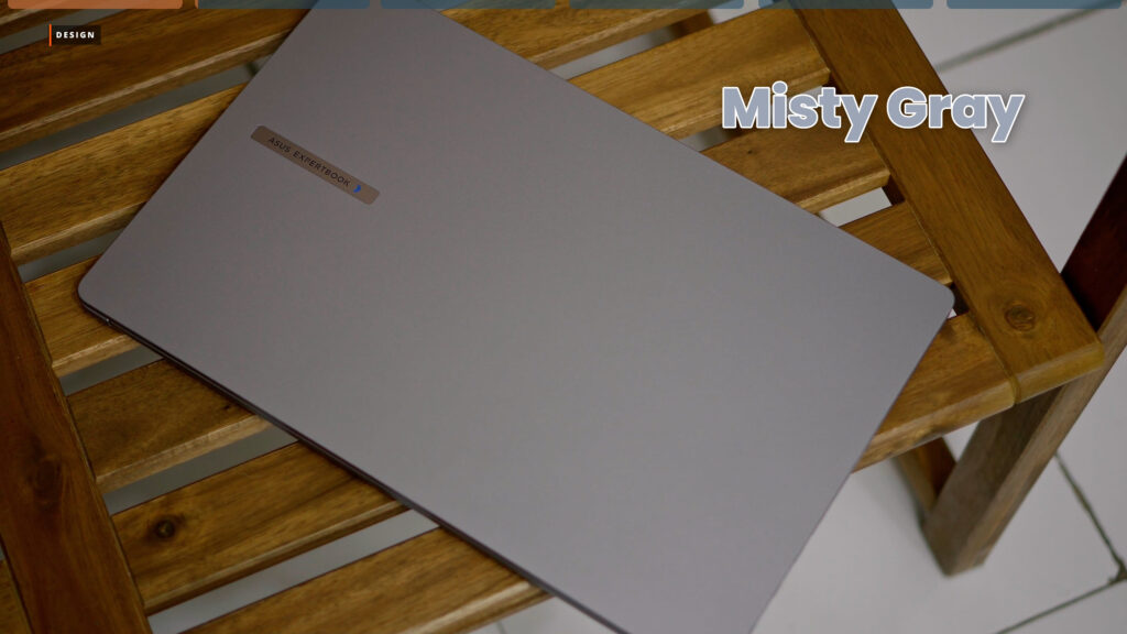 Misty Gray yung kulay nito. Medyo lighter yung kulay compared sa previous ExpertBook na pinakita ko. 1.6kg yung weight nito. Meron din itong ExpertCool thermal. Kapag tiningnan yung ilalim ay maganda yung airflow ng laptop. Yung hangin ay papasok sa mga gilid sa ilalim at lalabas naman sa may likuran. Magandang design yan. Kahit anong pwesto ang gawin sa laptop ay magiging maganda pa rin yung airflow nito. Open man or clamshell mode ay maayos pa rin ang airflow at hindi magkakaroon ng unnecessary alarming heat.