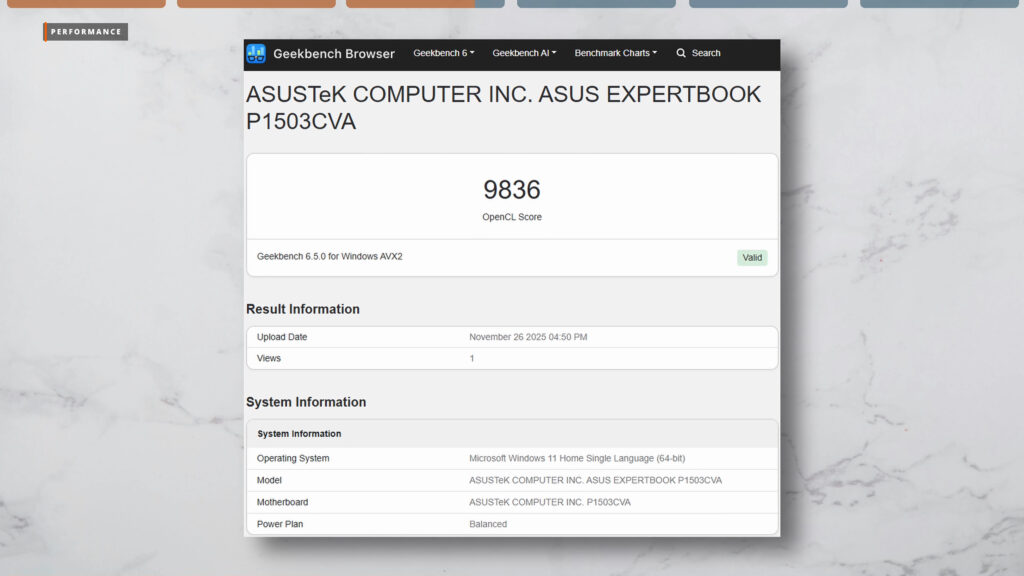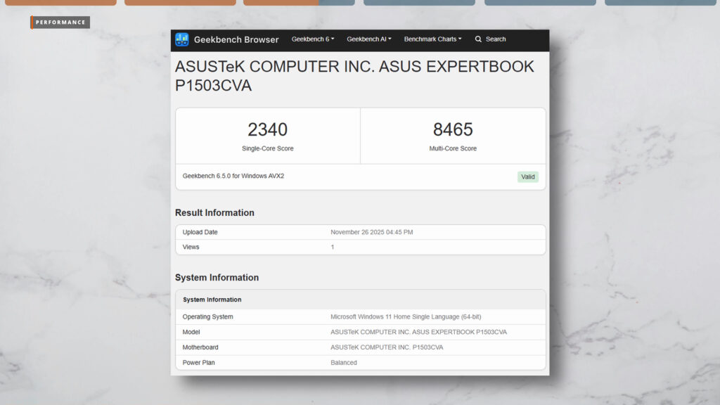Sobrang decent ng single-core score at multi-core score sa Geekbench. Take note, yung score na iyan ay nakuha sa single channel na RAM. Kung dadagdagan at isasagad to 64GB ay mas tataas pa yung score. Sa graphics score, entry level yung performance ng laptop. Maliban sa integrated yung graphics nito ay hindi naman sobrang gandang performance yung ibibigay sa atin ng Intel UHD. Yung mga basic photo at video editing ay kayang-kaya. Lalo na yung mga 1080p lang naman na resolution. Pero pagdating sa rendering ay ibang usapan na. Dahil nga sa integrated lang at Intel UHD ay medyo struggle kahit pa isagad yung RAM.