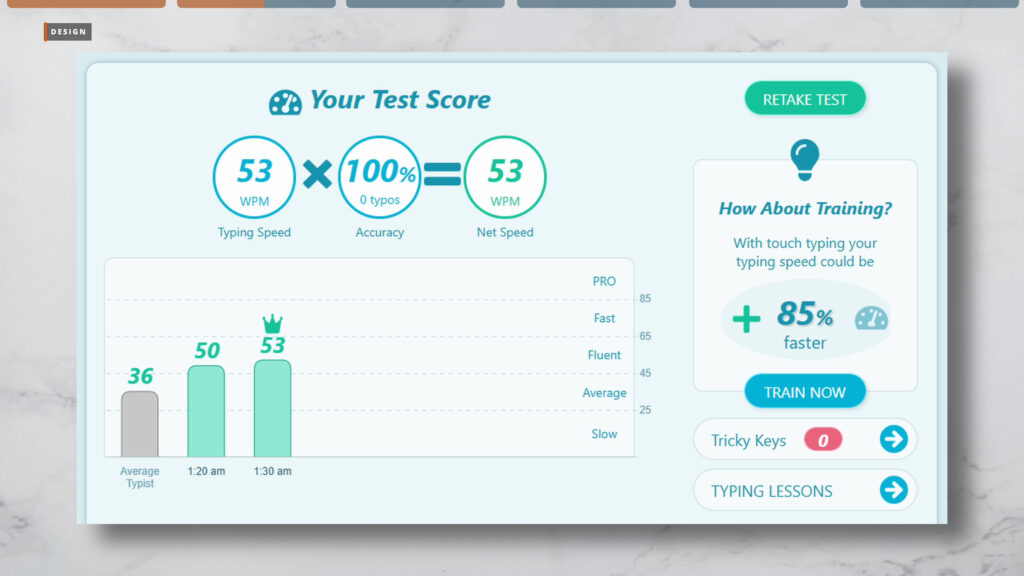 Isa pa sa nagustuhan ko sa ExpertBook P1 ay yung chiclet keyboard na may numpad. Talagang for professional at para sa mga trabaho natin kasi importante ang numpad. Meron din itong 1.35mm Key Travel. Sobrang comfortable gamitin ng keyboard nitong ExpertBook P1. Yung texture nito ay matte at hindi makinis ang texture. Medyo mahirap i-explain. Pero kapag nahawakan niyo sa personal yung keyboard ay maiintindihan niyo yung sinasabi ko. Talagang na-satisfy ako, to the point na nakauha ako ng highest WPM score sa typing test. 53 WPM ang nakuha ko. So far, ito yung pinakamataas na words per minute na nakuha ko sa isang laptop. Kaya kung marami tayong ie-encode gamit yung laptop. Rest assured na magiging comfortable kayo. Napakasarap gamitin ng keyboard nito.