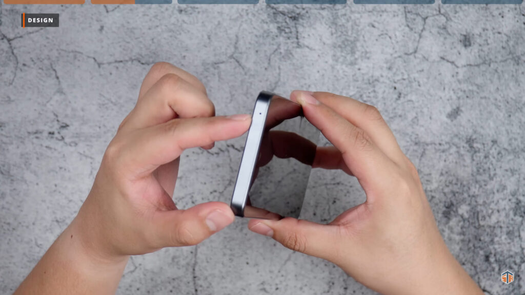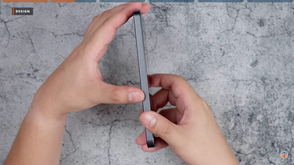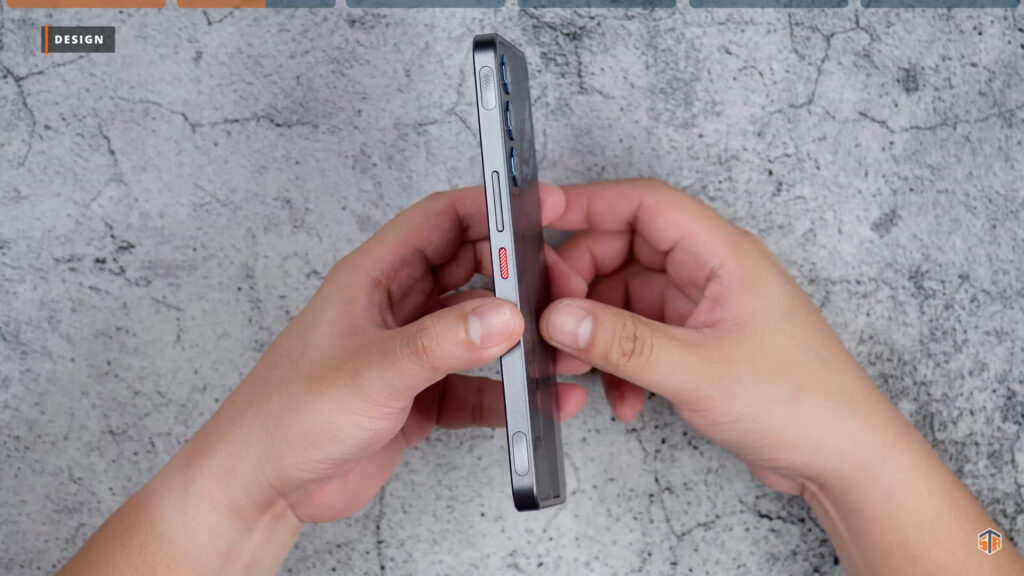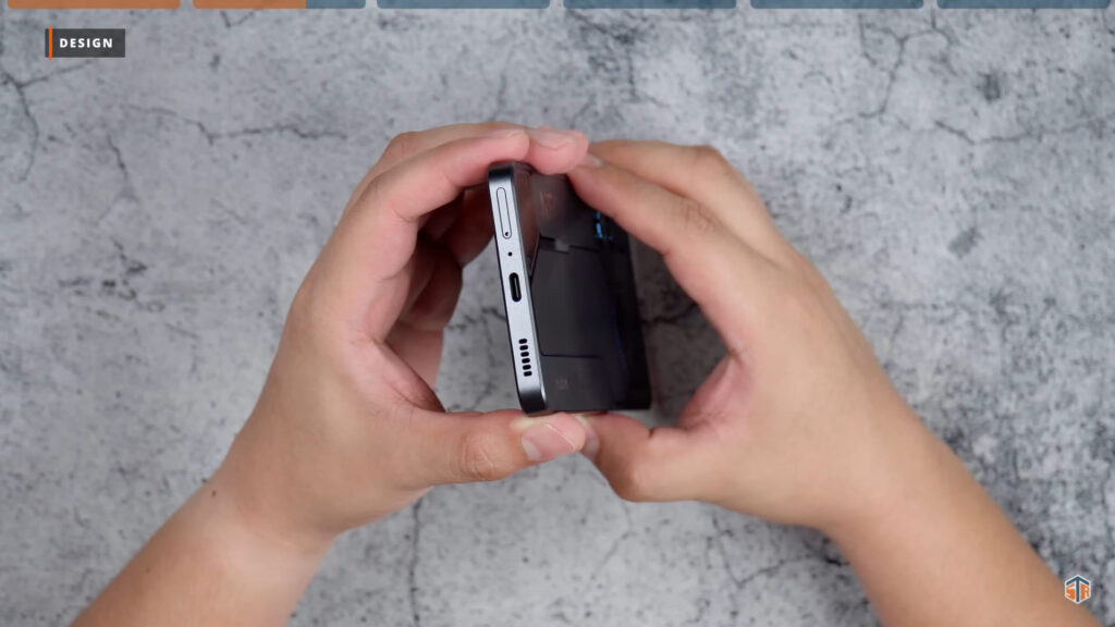 Flat naman ‘yung sides ng phone. Sa may left side ay walang makikitang kahit ano. Sa may taas ‘yung secondary microphone. Tapos, sa may right side ang volume up and down buttons at power lock button. Ang power lock button ay color red at merong texture. Madali malaman na ‘yun yung pinipindot. Meron din itong dalawang capacitive na shoulder triggers. Sa may ilalim ang USB-C port, main microphone, main speaker, at SIM tray. Dalawang nano SIM lang yung pwedeng ilagay. Hindi makapaglalagay ng micro-SD card. Isa yan sa medyo nakalulungkot sa phone. Mabuti na lang talaga ay 256GB na yung pwedeng mabili sa presyo nito.