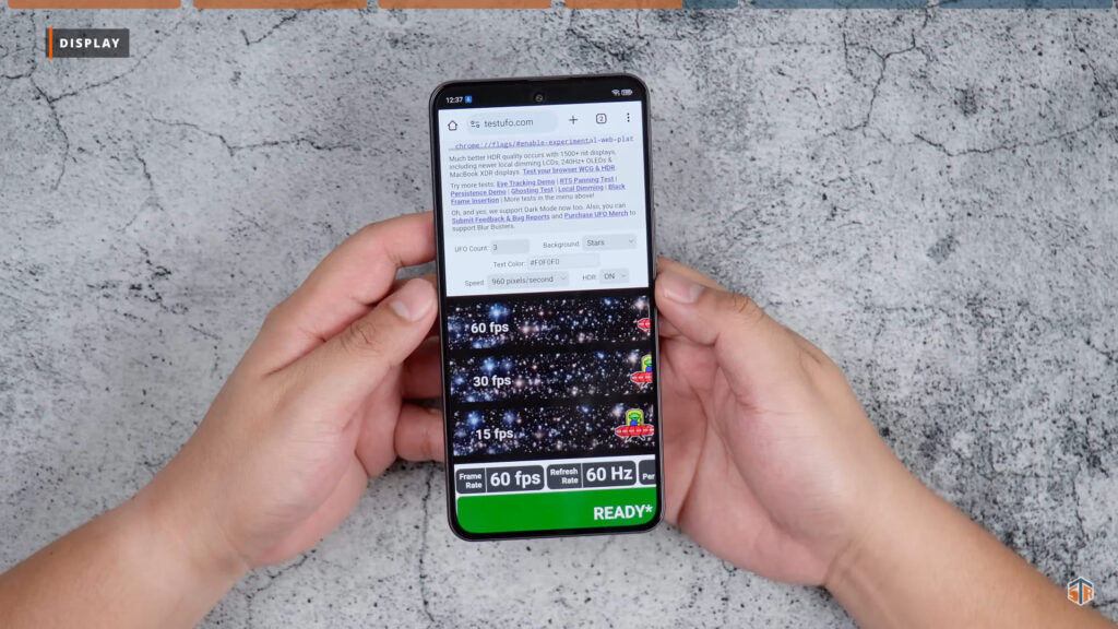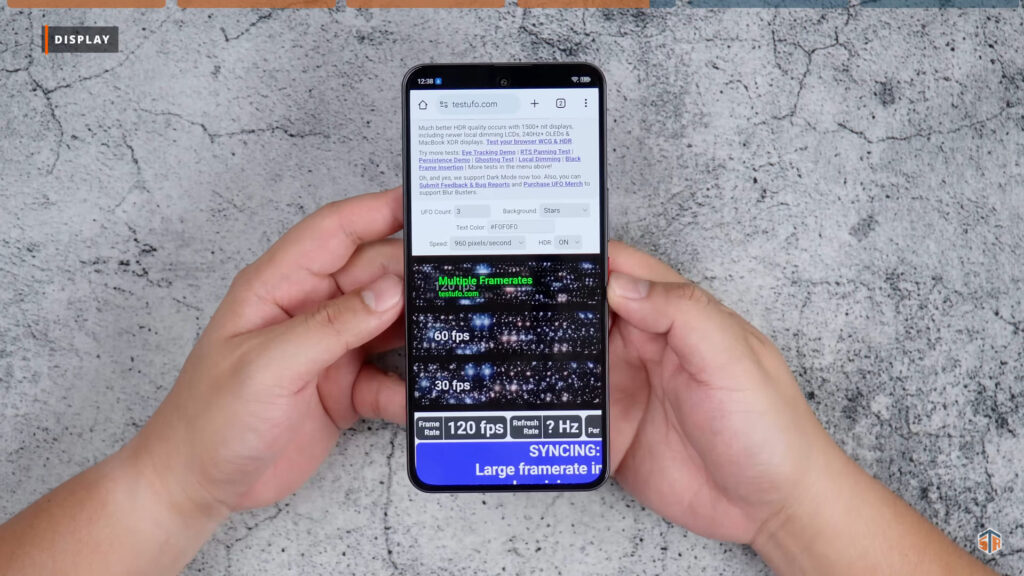 Nakakatuwa ‘yung refresh rate behavior. Sa Test UFO, kapag hindi ginagalaw ‘yung display ay 60Hz lang talaga. Pero kapag ini-touch ay babalik to 120Hz. Dapat talaga ay tipid sa battery itong phone. Hopeful ako na sa darating na mga software updates ay tataas pa yung SoT. Wala itong kahit anong color preset sa display settings. Pero pwede makapagtimpla ng color temperature.