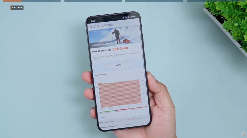 Makikita sa screenshot ang settings nang unang result ng PCMark. Ang result ay 16 hours and 3 minutes. Sa unang test pa lang ay magkakaroon na kayo ng idea. Yung 10000mAh na battery capacity ng phone ay hindi kagaya ng ine-expect natin na performance. Pero una pa lang yan.