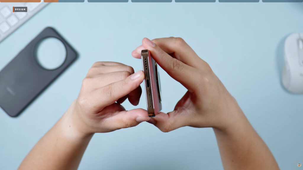 Pero pagdating sa ibang aspect nung likod, kagaya na lang ng texture nito na leather like feels ay goods na goods talaga. Napaka-premium ng itsura. Pero for sure, itong gold na gilid nito ay madaling mababakbak kapag nagasgas. Mamumuti ito sigurado. Malalaman natin yan sa durability test mamaya. Sa taas ng phone yung secondary speaker, secondary microphone. Sa may baba yung main speaker, USB-C port, main microphone, at micro-SD card. Pero ang nakakalungkot, hindi expandable ang storage nito. Medyo nakakagulat ‘yun para sa ganitong phone. Dual SIM lang ito. Ito yung isa sa mga dapat niyong i-consider. Kasi kapag binili natin ‘tong phone ay 256GB lang ito. Isa pa sa nakakalungkot sa X9d ay wala itong support sa eSIM. Dual nano SIM lang ‘yung kaya ng phone.