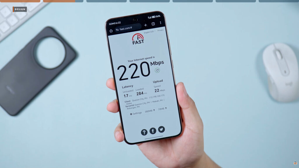 Pakita ko sa inyo ngayon yung 5G data speed connection nito. Una, sa OOKLA speed test, 146Mbps yung nakuha nitong download speed. 13.7Mbps naman yung upload. Sa speed test ng Google, 195Mbps yung download speed at 21Mbps naman yung upload speed. At ang matindi pa, sa Fast, nakakuha ito ng 220Mbps download speed at 22Mbps naman na upload speed. Pagdating sa data connection ay mabilis yung 5G connectivity nito. Kung hindi ako nagkakamali, yung 5G version na ginamit nila ay NR. Ibig sabihin ay New Radio. Mas malakas ‘yung sagap nito compared dun sa mga naunang 5G signal sa isang phone.