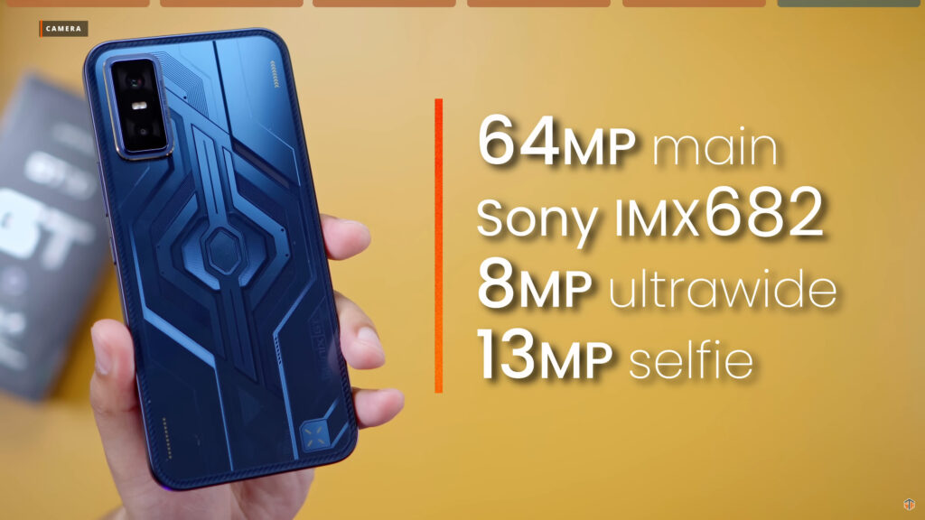 | CAMERA | 64MP f/1.75 OIS Main Sony IMX682 8MP f/2.2 Ultrawide Max video: 4k 30FPS 13MP f/2.2 Selfie Max video: 4k 30FPS |