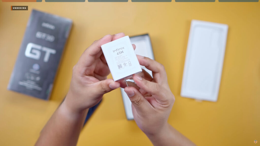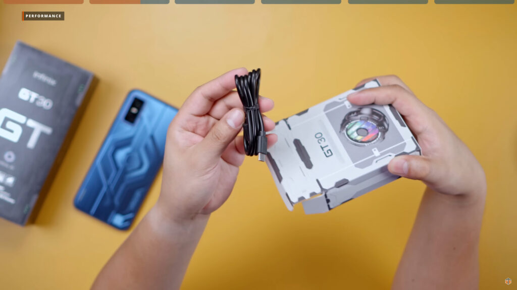 Napakadaming mechanical design sa likod pero masasabi kong hindi pa rin oa. Good job sa Infinix. Hindi sila naglagay ng frosted case or hard case. Kasi gustong-gusto nating makita yung likod na yan. Sa ilalim ng box ay may 45W charging brick na USB-A port. Kasama rin ang USB-C to USB-A cable. Agad-agad ay pag-usapan natin yung performance ng phone. Iyan yung number one reason kung bakit natin bibilhin nitong Infinix GT 30 5G.