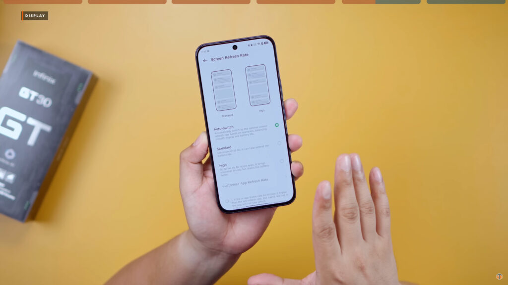 Pagdating sa specs ng display, masasabi talagang goods na goods for gaming. Lalo na mayroong protection. If ever na gusto nating tanggalin ‘yung pre-installed na screen protector sa phone. Hindi agad-agad magagasgas ‘yung display. Pero hindi ko mare-recommend ‘yun. Sa color reproduction, napakaganda ng kulay. Talagang pop na pop. Napaka-vibrant at napaka-accurate for the most part. Sa screen refresh rate ay merong tatlong option: Auto Switch, Standard at High.