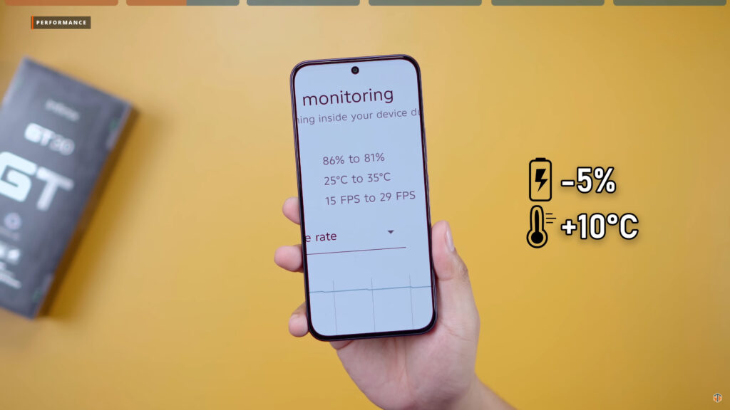 Pinagmamalaki rin ng Infinix na maganda ‘yung thermals nitong Infinix GT 30 5G. Napakaimportante niyan kung talagang gaming focused ‘yung phone na bibilhin natin. Kung gagamitin natin ‘to ng matagal, lalo na sa mga mabibigat na games. Kailangang merong proteksyon sa matinding init. Tingnan natin kung effective yung inilagay na improved cooling system ng Infinix. Sa result ng Wild Life Stress Test, sa battery consumption ay nabawasan lang ng 5%. Pagdating sa thermals, impressive kasi 10°C lang yung nadagdag. Umabot lang ng 35°C. Although maganda yung starting point.