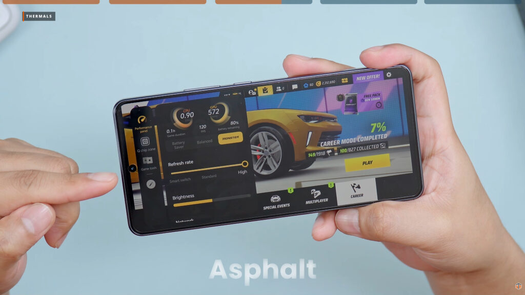 Meron din itong tinatawag na Q2 Display Chipset. Yung mga 60fps na game ay pwede nitong gawing 144fps or 120fps. Medyo artificial ‘yung dating pero at least mas magiging smooth ‘yung feels dahil sa Q2 Display Chip. Pero mind you, hindi pa rin madami yung games or applications na may support sa mataas na refresh rate. Sa ngayon ay konti pa lang. Sa test ko, meron akong na-experience na isang game lang na umabot ng 120fps ‘yung gameplay. At ‘yan ‘yung Asphalt Legends.