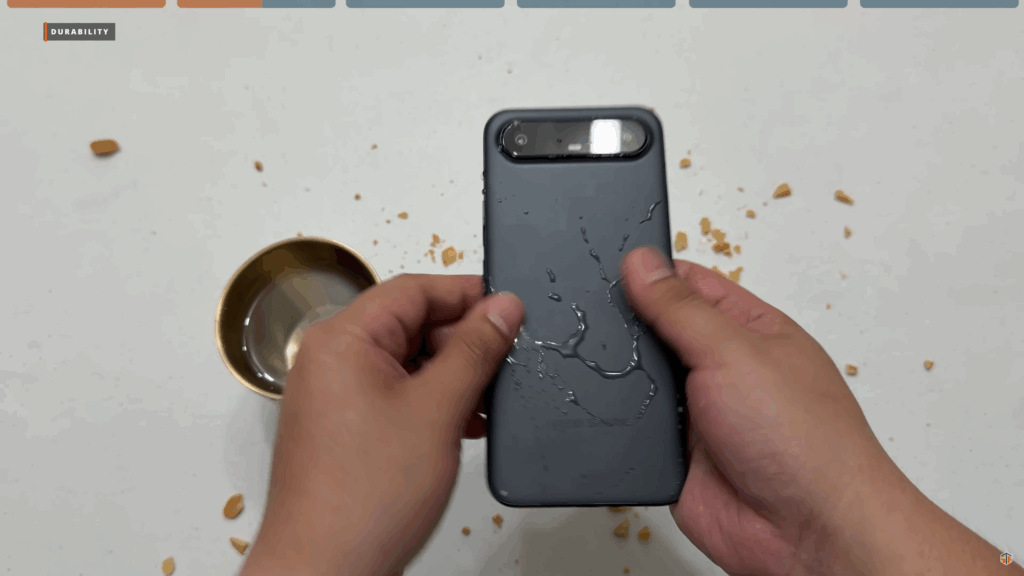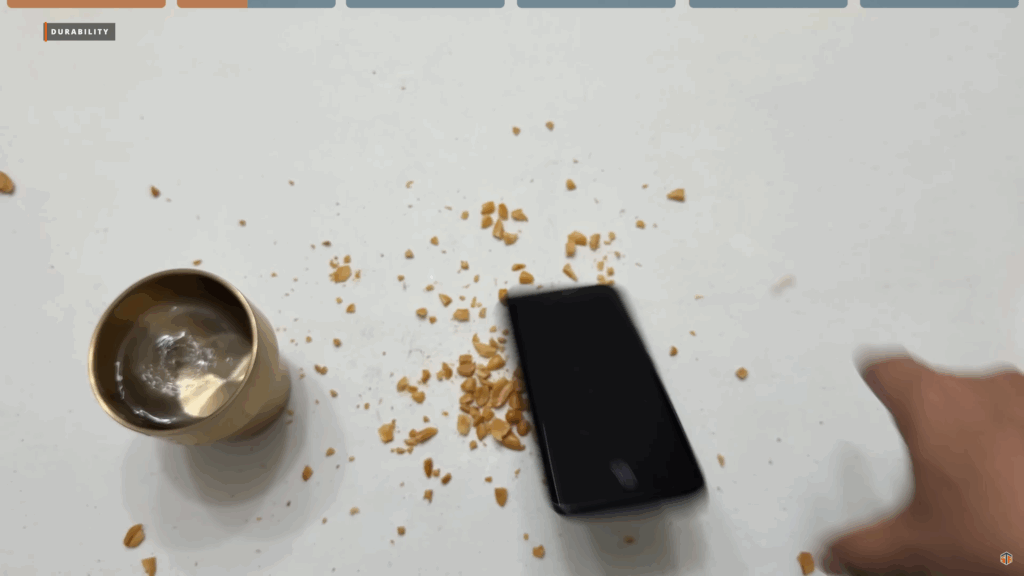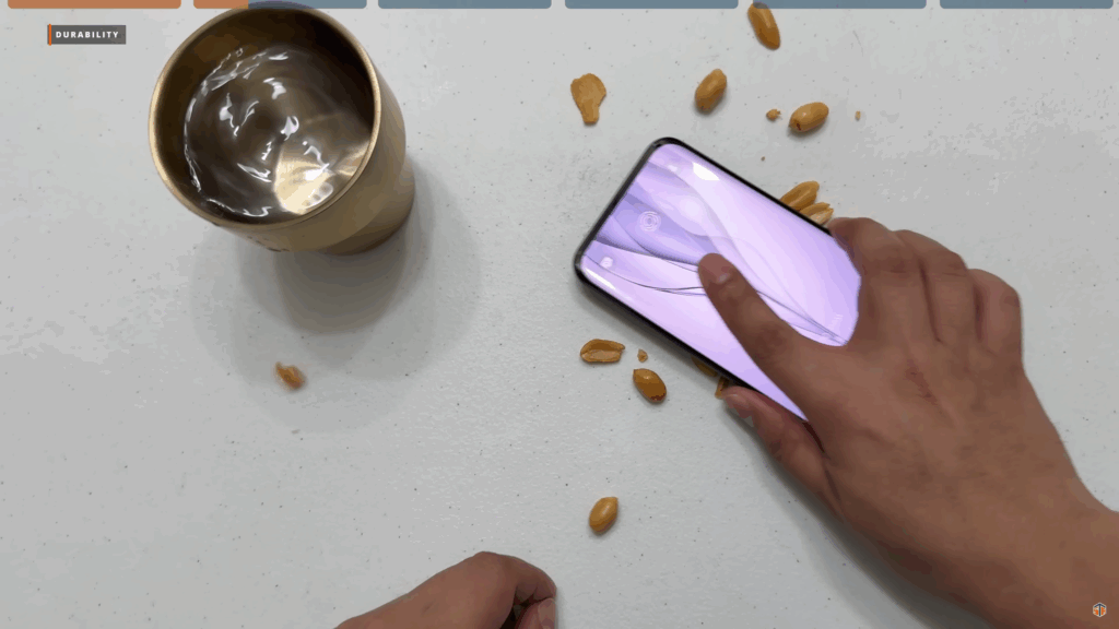 Meron itong US Military Grade Certification. Although, hindi naman ito rugged phone pero at least pumasa ito sa mga test na yon. Mukhang hindi nga compromise yung durability ng phone na to kahit pa sobrang nipis. At para mapatunayan yan ay gumawa ako ng ilang mga test. Una ay nag-crush ako ng peanuts gamit itong TECNO slim. Nag-simple drop test din ako sa table. At inisprayan ko din ng tubig. Hindi to IP68 kaya huwag ilulubog sa tubig. Pero yung mga spray or maulanan ng tubig ay wala pong problema. Matibay na matibay itong TECNO Slim.