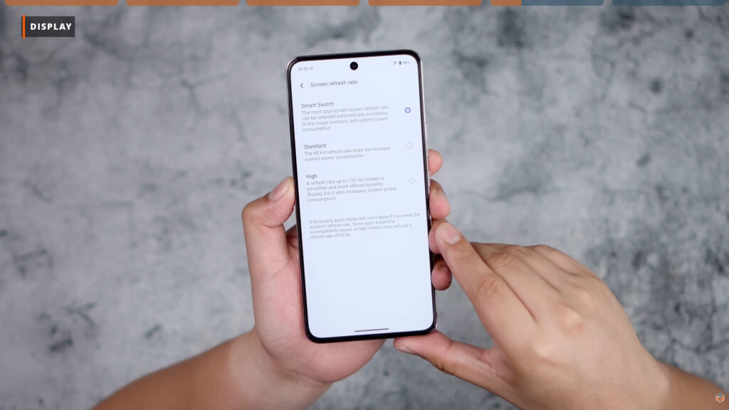 Sa settings nung refresh rate nito, meron namang tatlong option. Kung gusto natin na ‘yung Funtouch OS na ‘yung mag-decide kung ilang refresh rate yung kailangan natin. Piliin ang Smart Switch. Kung gusto naman nating i-lock to 60Hz lang or 120Hz, Standard at High namang yung pwede nating piliin. Pagdating sa behavior ng refresh rate, kapag ginagalaw yung display ay 120Hz. Pero ilang segundo lang ay bababa na ito to 60Hz. Makakatipid tayo sa battery. Pwede rin tayong magtimpla ng kulay, merong Standard preset, Professional, at Bright. At pwedeng matimpla yung color temperature kung gusto natin. Nakakatuwa din na mai-utilize natin ang magandang display nito. Yung Widevine Security ay Level 1 at Full HD naman ang max playback resolution.