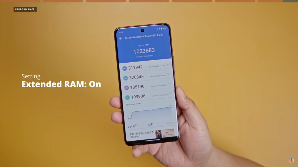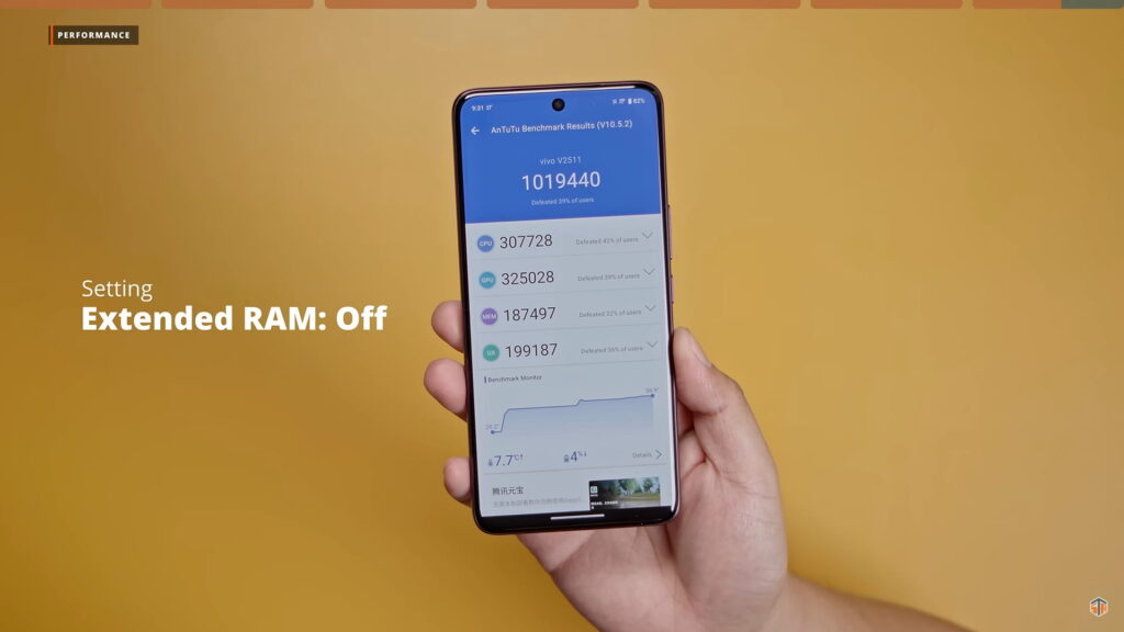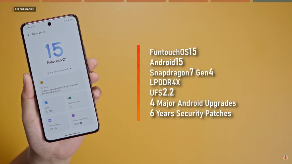 Ganun katindi yung pag-aalaga na gagawin ng vivo sa V60. Napakalaking improvement niyan kung ikukumpara sa V50 na 3 major Android upgrades lang. ‘Yun nga lang, nakalulungkot kasi LPDDR4X pa rin at UFS 2.2 pa rin ‘yung nilagay nila. Yung UFS 2.2 ay parang V30 pa ay yan na yung storage type ng V series. Sana mag-UFS 3.1 naman sa susunod na V series. Medyo outdated na talaga ang UFS 2.2. Although hindi naman mabagal yan. Mabilis pa rin yung read and wright speed pero medyo napag-iiwanan na. Kung gusto niyo naman dagdagan yung 12GB physical RAM, pwedeng i-enable yung extended RAM at madagdagan ng additional 12GB. In total ay 24GB yung pwedeng maging RAM nito.