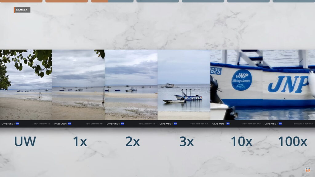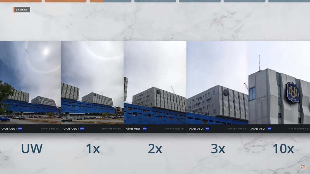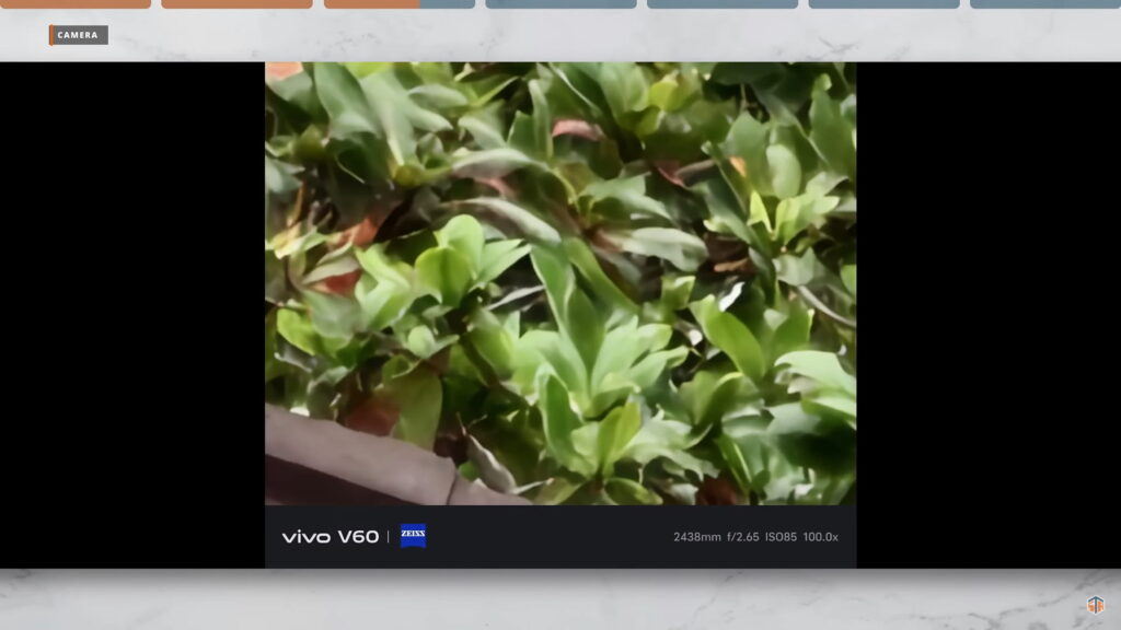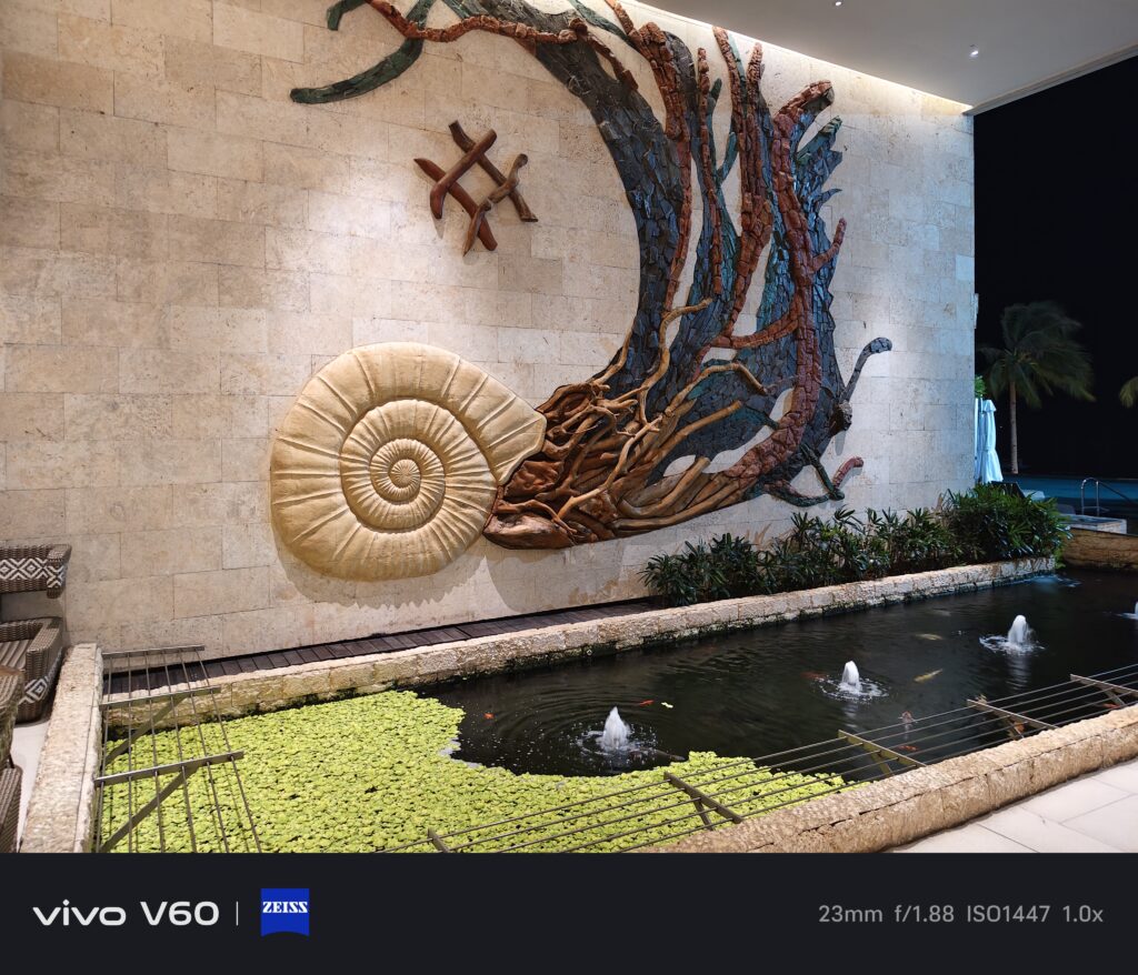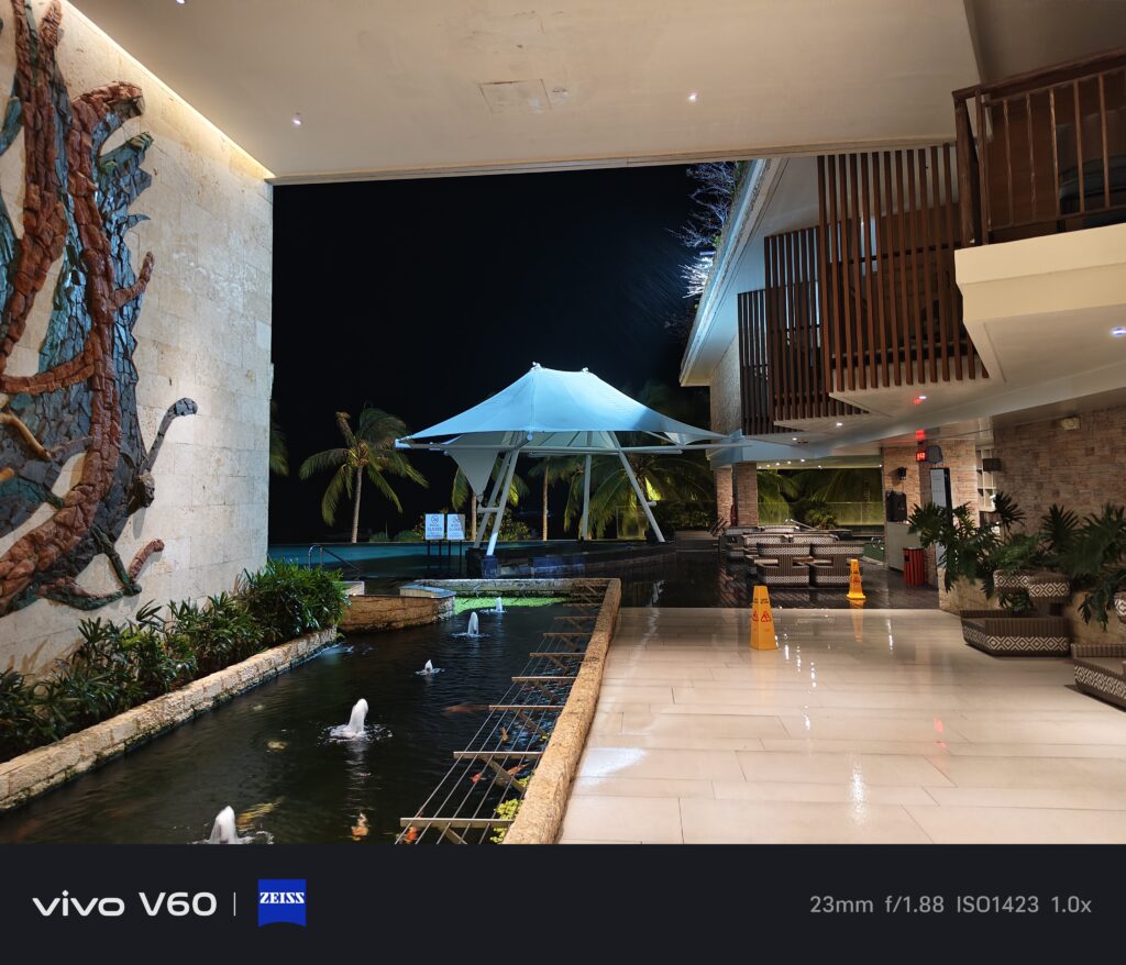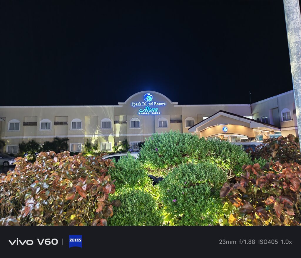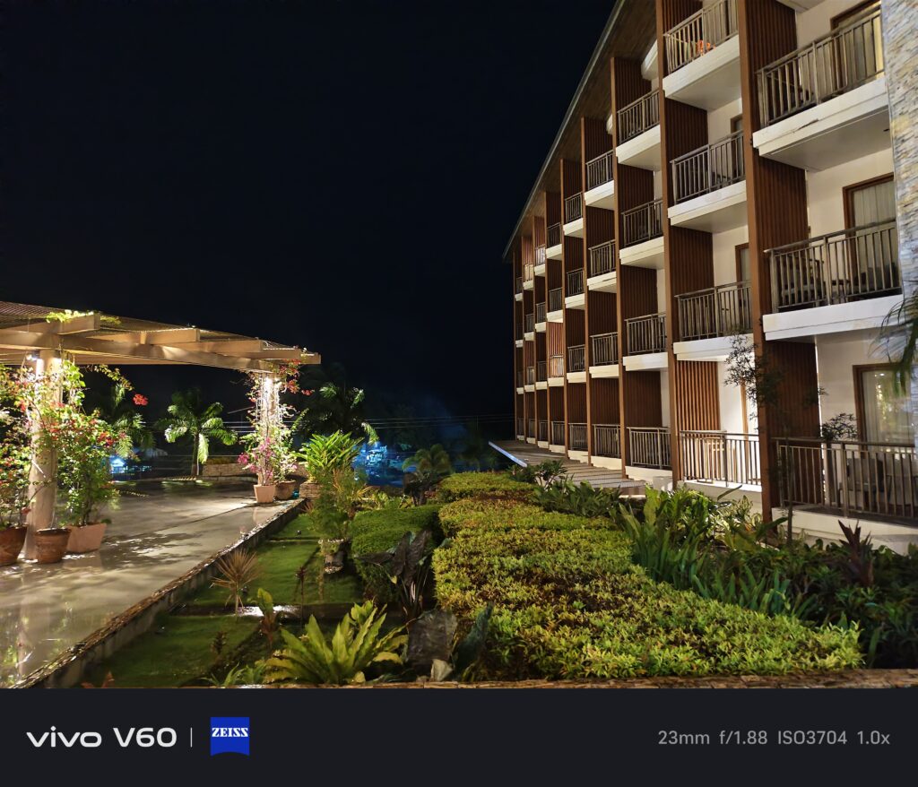 Maganda ‘yung timpla sa kulay ng ultrawide, main camera, at nung pangatlong camera. Halos pantay-pantay. Hindi mapapansin halos na ibang camera na pala yung ginamit sa pag-take ng photo. Good job yun kasi kadalasan nating na-experience yan sa mga flagship phones lang. Sa vivo V60 ay mae-experience rin natin yung ganyan. Sa image quality nung 10x at 100x ay usable talaga. May kasama ng AI ‘yan kasi ‘yung periscope telephoto ay hanggang 3X lang. Kapag nag-100x, sa preview ay hindi talaga malinaw. Parang unusable. Pero pag nag-start na kayong mag-take ng photo, doon gagana yung image processing nitong V60. Mae-enhance yung quality nung 100x photo na kinunan natin. Kahit sa mga night photos at sa mga low light situations, maganda pa rin yung kuha sa V60.