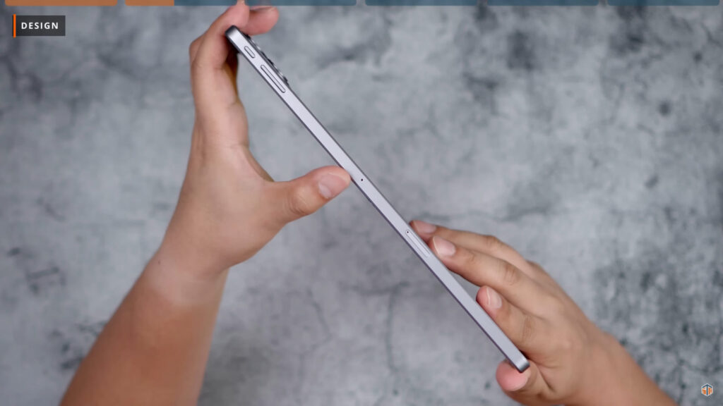 Sa may itaas ng tablet ay makikita natin ang USB-C port at ang dalawang speaker grills. Meron ulit itong dalawang speaker grill sa ilalim. Sa ibabaw naman kapag naka-landscape mode ay may microphone, SIM tray, volume up and down buttons, at power lock button. Sa kabilang side naman ay wala na tayong makikita. Ngayon ito ang catch, aakalain mo na apat ang speakers nitong VistaTab 30 dahil apat ang grills. Pero sa totoo lang, dual speakers lang ang tablet na ito. Hindi ko alam at hindi ko maintindihan kung bakit ginawang apat na speakers grills ng itel itong tablet. Plus, isa pa sa naka-caught ng attention ko sa design ay yung placement ng USB-C port. Kasi kapag ginamit mo ng naka-portrait yung tablet ay nasa taas ang port. Ang usual na tablet at kahit pa mga phone natin ay nasa ilalim ang port.