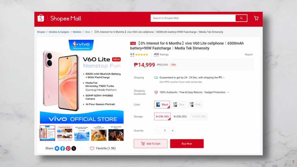 As of writing this article, ang current price nitong V60 Lite 4G ay Php14,999 para sa 8+256GB. Ang capacity naman nito ay 6500mAh at 90W ‘yung charging speed. Kagaya sa naunang V60, nabilib din ako sa phone na ‘to kasi ang nakuha nitong SOT ay 22 hours and 48 minutes. Matindi talaga. Tapos hanggang Android 19 na yung mare-receive nito na Major Android Upgrade at 6 Years Security Patches.