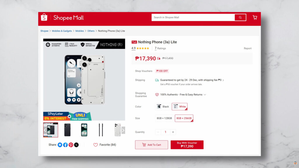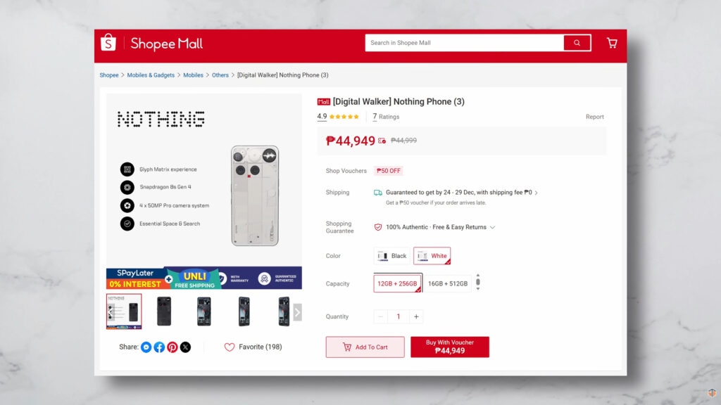 As of writing this article, ang current price nito ay Php17,390. ‘Yan ay 8+256GB na. Pwede itong bilhin mismo sa Digital Walker na website. Sila yung official distributor ng mga Nothing Phones dito sa Philippines.
